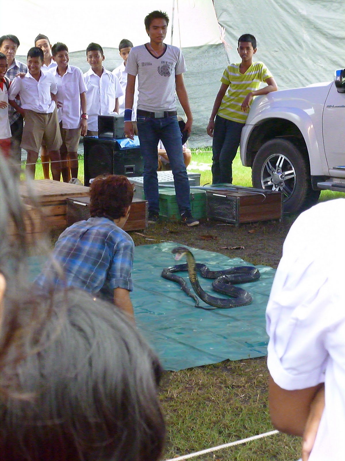 We also saw a snake show at the festival. It was insane! The show started with a guy provoking small snakes to bite at him. I was pretty scared, especially because a shin high rope was the only thing separating the snakes from the audience. The angry snakes totally could have slithered into the audience. But the four men in charge of the show kept the snakes on a tarp. After the small snakes they brought out the cobras. First a small cobra then a large one, we left while the large one was quite mad. Not sure what happened after that, hopefully nothing scary.